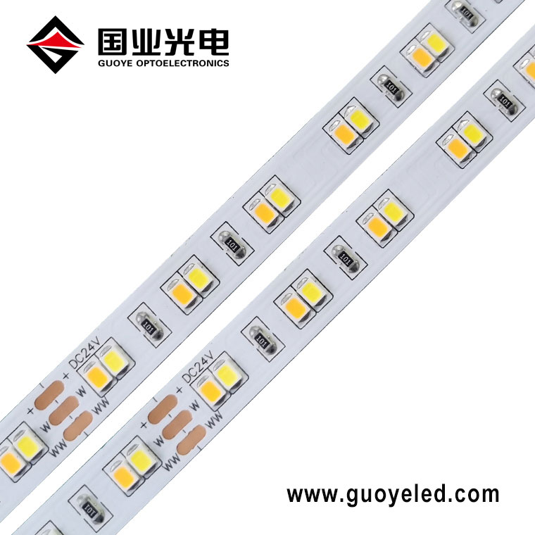 2835 چراغ نواری LED قابل تنظیم دو رنگ که به طور گسترده در دکوراسیون منزل، اتاق نشیمن، اتاق خواب، نورپردازی اتاق هتل و غیره استفاده می شود، FPCB دو لایه 2 OZ با کیفیت بالا، تراشه led برند Sanâ € ™ اصلی، کیفیت پایدار، قیمت مقرون به صرفه، رنگ خوب ثبات.